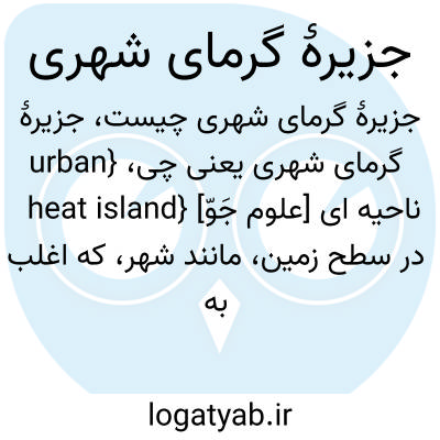 {urban heat island} [علوم جَوّ] ناحیه ای در سطح زمین، مانند شهر، که اغلب به سبب فعالیت انسان گرم تر از پیرامون آن است متـ. جزیرۀ گرما heat island
