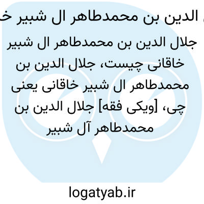 [ویکی فقه] جلال الدین بن محمدطاهر آل شبیر خاقانی. جلال الدین بن محدطاهر، از شخصیت های آل شبیر خاقانی می باشد؛ این خاندان شاخه ای از خاندان خاقانی است.