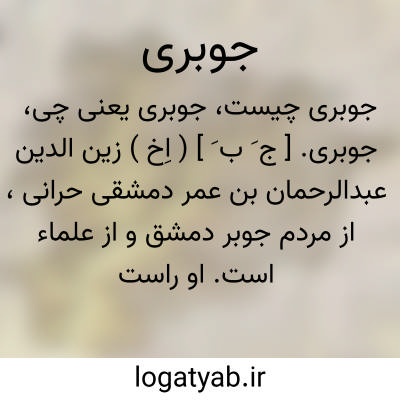 جوبری. [ ج َ ب َ ] ( اِخ ) زین الدین عبدالرحمان بن عمر دمشقی حرانی، از مردم جوبر دمشق و از علماء است. او راست: 1 - المختار فی کشف الاسرار، درعلم حیل، صاحب کشف الظنون آنرا بنام کشف الاسرار و هتک الاستار ذکر کرده است. 2 - الصراطالمستقیم، در نجوم. بسال 526 هَ. ق. مقیم مصر بود. ( معجم المطبوعات ).