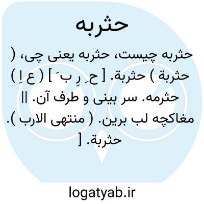 ( حثربة ) حثربة. [ ح ِ رِ ب َ ] ( ع اِ ) حثرمه. سر بینی و طرف آن. || مغاکچه لب برین. ( منتهی الارب ).