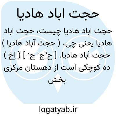 ( حجت آباد هادیا ) حجت آباد هادیا. [ ح ُج ْ ج َ ] ( اِخ ) ده کوچکی است از دهستان مرکزی بخش طبس شهرستان فردوس در7هزارگزی جنوب باختری طبس و 3هزارگزی باختر مالرو عمومی طبس به خداآفرین. جلگه و گرم سیر است. ( از فرهنگ جغرافیایی ایران ج 9 ).