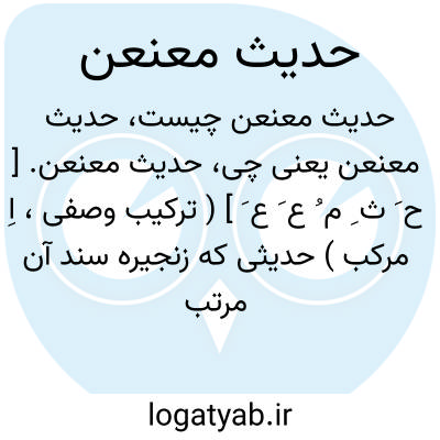حدیث معنعن. [ ح َ ث ِ م ُ ع َ ع َ ] ( ترکیب وصفی، اِ مرکب ) حدیثی که زنجیره سند آن مرتب باشد بحیث یروی کل راو عن سابقه بلا انقطاع. حدیثی که عنعنات آن منظم باشد.