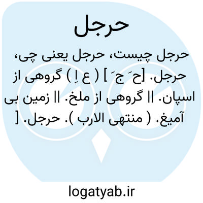حرجل. [ ح ُ ج ُ ] ( ع ص، اِ ) مردم دراز. ( مهذب الاسماء ). مرد درازبالا. ( منتهی الارب ). ج، حَراجِل. || شتاب رو. || ملخ بزرگ سبز.