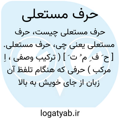 حرف مستعلی. [ ح َ ف ِ م ُ ت َ ] ( ترکیب وصفی، اِ مرکب ) حرفی که هنگام تلفظ آن زبان از جای خویش به بالا گراید، پس اگر آن اندازه بالا رود که به حنک منطبق شود مطبق نامیده شود و اگر کمتر بالا رود فقط مستعلی نامیده شود. حرفهای مستعلی اضافه بر چهار حرف مستعلی منطبق ص. ض. ط. ظ، شامل حرفهای خ. غ. ق میباشد، که زبان در هنگام تلفظ به آنهابالا می آید، اما با حنک منطبق نشود، و آنها را مستعلی غیرمنطبق نامند. پس مستعلی اعم از مطبق است، هر مطبق مستعلی باشد نه بعکس. در برابر حرف منخفض که هنگام تلفظ زبان بالا نیاید. ( از کشاف اصطلاحات الفنون ).