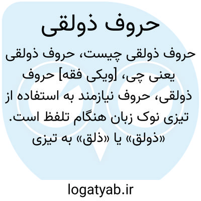 [ویکی فقه] حروف ذولقی، حروف نیازمند به استفاده از تیزی نوک زبان هنگام تلفظ است.