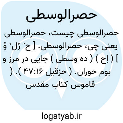 حصرالوسطی. [ ح َ رُل ْ وُ ] ( اِخ ) ( ده وسطی ) جایی در مرز و بوم حوران. ( حزقیل 47:16 ). ( قاموس کتاب مقدس ).