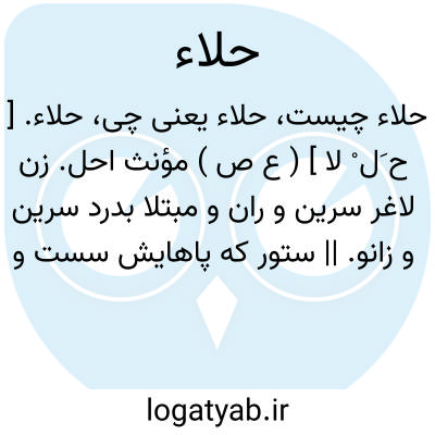 حلاء. [ ح َل ْ لا ] ( ع ص ) مؤنث احل. زن لاغر سرین و ران و مبتلا بدرد سرین و زانو. || ستور که پاهایش سست و پی آن فروهشته شده باشد. ( منتهی الارب ).