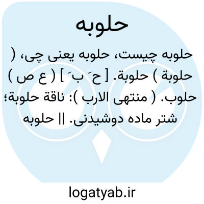 ( حلوبة ) حلوبة. [ ح َ ب َ ] ( ع ص ) حلوب. ( منتهی الارب ): ناقة حلوبة؛ شتر ماده دوشیدنی. || حلوبه ابل؛ یکی از شتران یازیاده و همچنین است حلوبه غنم. ج، حلائب، حلب. ( از منتهی الارب ).