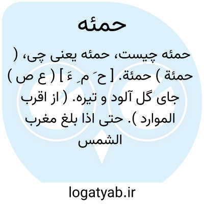 ( حمئة ) حمئة. [ ح َ م ِ ءَ ] ( ع ص ) جای گل آلود و تیره. ( از اقرب الموارد ). حتی اذا بلغ مغرب الشمس وجدها تغرب فی عین حمئة.( قرآن از اقرب الموارد ).و عین حامیه نیز خوانده شده است. ( اقرب الموارد ).