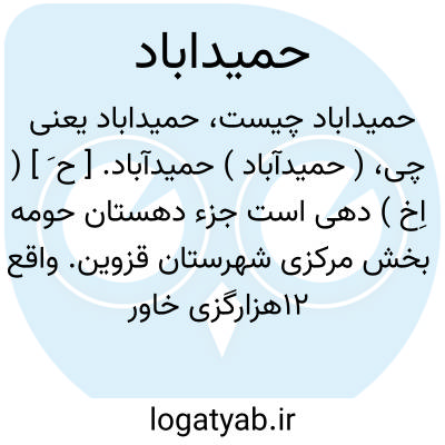 ( حمیدآباد ) حمیدآباد. [ ح َ ] ( اِخ ) دهی است جزء دهستان حومه بخش مرکزی شهرستان قزوین. واقع 12هزارگزی خاور قزوین و سه هزارگزی راه عمومی. ناحیه ای است واقع در جلگه و معتدل. دارای 185 تن سکنه میباشد. از قنات مشروب میشود. محصولاتش غلات، پنبه و جالیز. اهالی به کشاورزی گذران میکنند. راه آن مالرو است و ماشین هم میتوان برد. ( از فرهنگ جغرافیائی ایران ج 1 ).