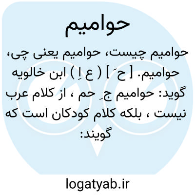 حوامیم. [ ح َ ] ( ع اِ ) ابن خالویه گوید: حوامیم ج ِ حم، از کلام عرب نیست، بلکه کلام کودکان است که گویند: تعلمنا الحوامیم بلکه جمع آن آل حم [ حا میم ] یا ذوات حم است و آن هفت سوره است از قرآن: المؤمن، فصلّت، الشوری، الزخرف، الدخان، الجاثیة، الاحقاف یعنی سوره هائی که به این لفظ «حم » آغاز میگردد و آن نام اعظم خداست. ( از اقرب الموارد ).