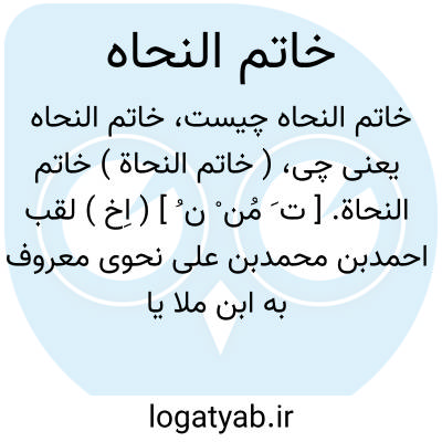 ( خاتم النحاة ) خاتم النحاة. [ ت َ مُن ْ ن ُ ] ( اِخ ) لقب احمدبن محمدبن علی نحوی معروف به ابن ملا یا ابن منلا. رجوع به ابن منلا شود.