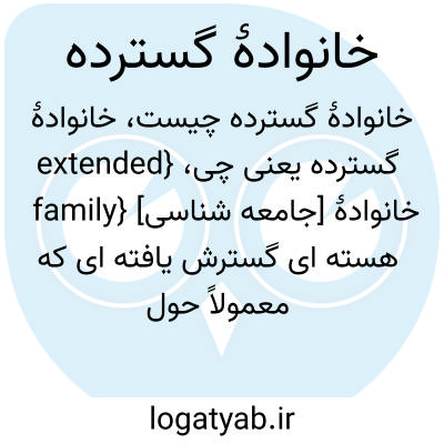 {extended family} [جامعه شناسی] خانوادۀ هسته ای گسترش یافته ای که معمولاً حول تباری یک سویه شکل می گیرد و در آن خویشاوندان نزدیک و گاه دور نیز در کنار یکدیگر زندگی می کنند