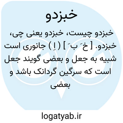 خبزدو. [ خ َ ب َ ] ( اِ ) جانوری است شبیه به جعل و بعضی گویند جعل است که سرگین گردانک باشد و بعضی گویند رتیلا است که خایه گیر باشد و آن جانوری است شبیه بعنکبوت. ( برهان قاطع ) ( آنندراج ) ( صحاح الفرس ). خنفساء. ( صحاح الفرس ) ( ذخیره خوارزمشاهی ) ( مهذب الاسماء ). خبزدوک. خاله سوسکه. گوگال. رجوع به خبزدوک شود: