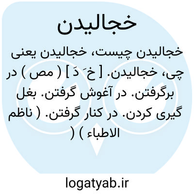 خجالیدن. [ خ َ دَ ] ( مص ) در برگرفتن. در آغوش گرفتن. بغل گیری کردن. در کنار گرفتن. ( ناظم الاطباء ) ( از فرهنگ شعوری ج 1 ورق 389 ).