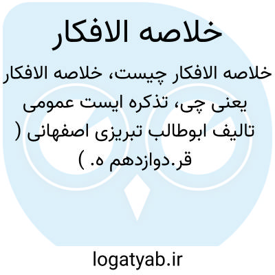 [ویکی فقه] خلاصة الافکار، تذکره عمومی در احوال و نمونه اشعار گروهی از شاعران فارسی زبان، نوشته ابوطالب تبریزی اصفهانی مشهور به لندنی (۱۱۶۶ـ۱۲۲۰)، نویسنده شاعر و جهانگرد ایرانی مقیم هند میباشد.