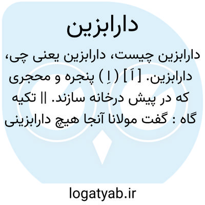 دارابزین. [ اَ ] ( اِ ) پنجره و محجری که در پیش درخانه سازند. || تکیه گاه: گفت مولانا آنجا هیچ دارابزینی یا چیزی باشد که دست در آنجا زنند و بگذرند؟ ( منتخب لطایف عبید زاکانی چ برلن ص 158 ). رجوع به دارآفرین، دارافزین و داروزین شود.