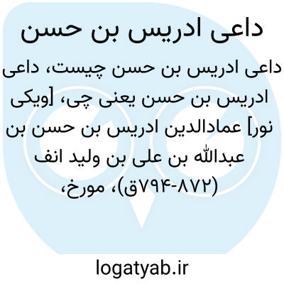 [ویکی نور] عمادالدین ادریس بن حسن بن عبدالله بن علی بن ولید انف (794-872ق)، مورخ، متکلم و ادیب یمنی، نوزدهمین داعی مطلق طیبیان از فرقه اسماعیلیه است.
