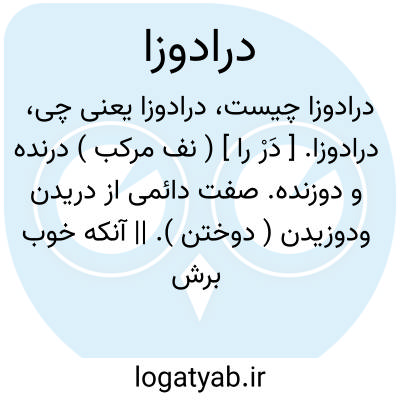 درادوزا. [ دَرْ را ] ( نف مرکب ) درنده و دوزنده. صفت دائمی از دریدن ودوزیدن ( دوختن ). || آنکه خوب برش و دوخت کند. || راتق و فاتق. ( آنندراج ). مخلط مِزیل. ( السامی نسخه عکسی ص 134 ). صاحب تجربه و دانا و عاقل باشد که اگر احیاناً کاری ناصواب از او سرزند اصلاح آن را بدانستگی تواند کرد. ( برهان ):