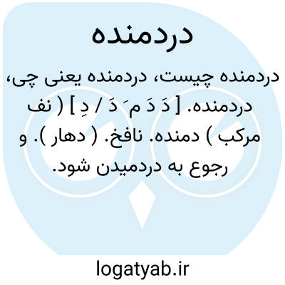 لغت نامه دهخدا دردمنده. [ دَ دَ م َ دَ / دِ ] ( نف مرکب ) دمنده. نافخ. ( دهار ). و رجوع به دردمیدن شود.