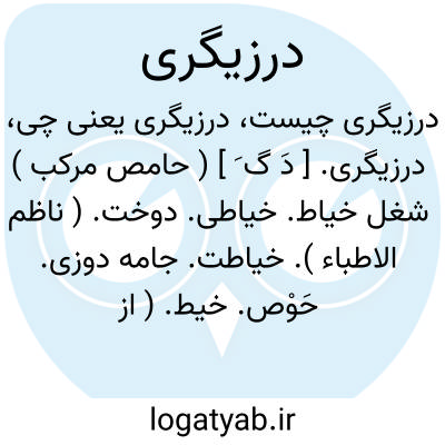 درزیگری. [ دَ گ َ ] ( حامص مرکب ) شغل خیاط. خیاطی. دوخت. ( ناظم الاطباء ). خیاطت. جامه دوزی. حَوْص. خیط. ( از منتهی الارب ). درزنگری. شغل درزی. و نیز محتمل است که صورت دگرگون شده درزنگری باشد. رجوع به درزنگری شود. ( یادداشت لغتنامه ): از پس آدم نخستین کسی که قلم بر کاغذ نهاد او بود و دبیری و درزیگری دانست کردن و نخستین کسی که جامه دوخت و درزیگری نهاد وی بود [ ادریس ]. ( ترجمه طبری بلعمی ).
