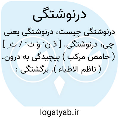 درنوشتگی. [ دَ ن َ وَ ت َ / ت ِ ] ( حامص مرکب ) پیچیدگی به درون. ( ناظم الاطباء ). برگشتگی: درنوشتگی لب دلو، لب مشک، لب دامن، لب آستین. ( یادداشت مرحوم دهخدا ): کبل، کبن؛ درنوشتگی دلو. ( منتهی الارب ).