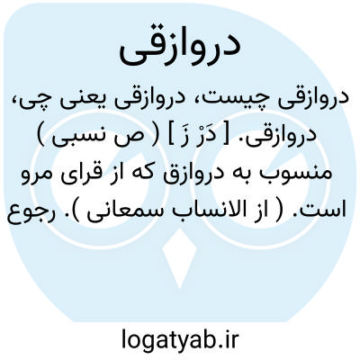 لغت نامه دهخدا دروازقی. [ دَرْ زَ ] ( ص نسبی ) منسوب به دروازق که از قرای مرو است. ( از الانساب سمعانی ). رجوع به دروازق شود.