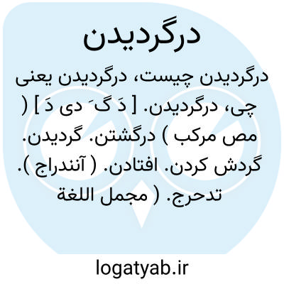 درگردیدن. [ دَ گ َ دی دَ ] ( مص مرکب ) درگشتن. گردیدن. گردش کردن. افتادن. ( آنندراج ). تدحرج. ( مجمل اللغة ). تزحلق. درغلتیدن. تکردح: