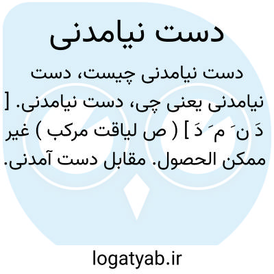 دست نیامدنی. [ دَ ن َ م َ دَ ] ( ص لیاقت مرکب ) غیر ممکن الحصول. مقابل دست آمدنی.