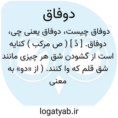 دوفاق. [ دُ ] ( ص مرکب ) کنایه است از گشودن شق هر چیزی مانند شق قلم که وا کنند. ( از «دو» به معنی عددی + «فاق » که معرب «فاژ» است به معنی باز کردن دهان در خواب ). ( از لغت محلی شوشتر نسخه خطی کتابخانه مؤلف ). چون مؤلف لغت شوشترفاق را به معنی فاژ و باز کردن دهان که معنی مصدری دارد گرفته لذا دوفاق را معنی مصدری داده است در صورتی که اصولاً از ( «دو» + «فاق » به معنی شکاف و شکاف قلم ) مرکب است که در این صورت معنی وصفی دارد ( به معنی دوشق و گشوده و دهان بازکرده ). ( لغت محلی شوشتر ). || کنایه است از ازاله بکارت به مدارا.