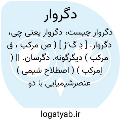 دگروار. [ دِ گ َرْ ] ( ص مرکب، ق مرکب ) دیگرگونه. دگرسان. || ( اِمرکب ) ( اصطلاح شیمی ) عنصرشیمیایی با دو یا چند شکل. رجوع به دگروارگی شود.