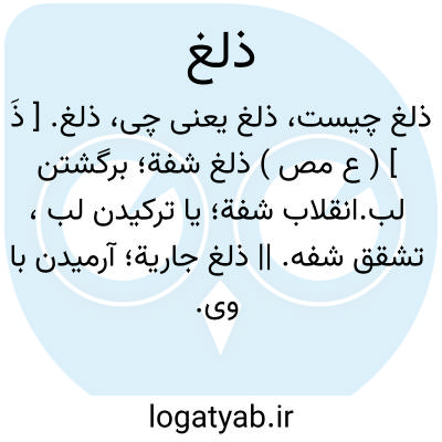 ذلغ. [ ذَ ] ( ع مص ) ذلغ شفة؛ برگشتن لب.انقلاب شفة؛ یا ترکیدن لب، تشقق شفه. || ذلغ جاریة؛ آرمیدن با وی. || ذلغ طعام؛ ولغطعام، لغف طعام، اکل طعام یا سغسعه طعام. یا خوردن طعام نرم را. || نیک چرب کردن طعام را.