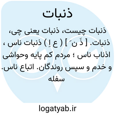 ذنبات. [ ذَ ن َ ] ( ع اِ ) ذنبات ناس، اذناب ناس؛ مردم کم پایه وحواشی و خدم و سپس روندگان. اتباع ناس. سفله ناس.
