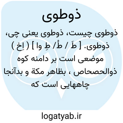 ذوطوی. [ طَ / طُ/ طِ وا ] ( اِخ ) موضعی است بر دامنه کوه ذوالحصحاص، بظاهر مکة و بدآنجا چاههایی است که غسل به آب آنهامستحب است. رجوع به امتاع الاسماع فهرست ج 1 و حبیب السیر ج 1 ص 134 و 141 و 277 شود. و بروز فتح مکه رسول اکرم ( ص ) در ذوطوی فرمان داد که زبیر با مهاجر ازاعلای مکه درآمده رایتی که بردوش داشت در جحون نصب کند و خالدبن الولید با بنی اسلم و غفاری از اسفل مکه درآیند و لوای خویش در منتهای بیوت زنند و سعدبن عباده با قوم خود از ثنیه مدینین ( کذا ) متوجه گردد و بنفس نفیس با طائفه خواص صحابه از طریق اواخر توجه فرمود. حبیب السیر جزو 3 از ج 1 ص 134 چهار سطر به آخرمانده. و رسول اکرم صلوات اﷲ علیه در سال دهم هجرت آنگاه که قصد حج فرمود در یک شنبه چهارم ذی الحجة به ذی طوی فرود آمد و صبح آن روز ادای فریضه صبح در آنجا کرد. || و در سال 169 هَ. ق. بروز ترویه میان حسین بن علی بن حسن و لشکر هادی خلیفه در ذوطوی جنگ روی داد و حسین کشته شد. || محل اجتماع لشکر عباسی در جنگ با صاحب فخ. ( اثیر، 6: 38 ).