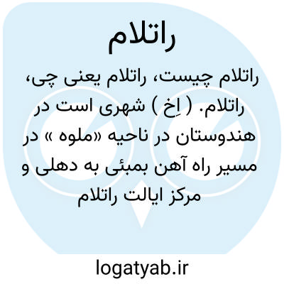 راتلام. ( اِخ ) شهری است در هندوستان در ناحیه «ملوه » در مسیر راه آهن بمبئی به دهلی و مرکز ایالت راتلام است. رجوع به قاموس الاعلام ترکی شود.