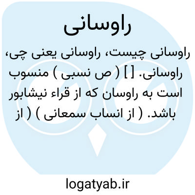 راوسانی. [ ] ( ص نسبی ) منسوب است به راوسان که از قراء نیشابور باشد. ( از انساب سمعانی ) ( از اللباب فی تهذیب الانساب ).