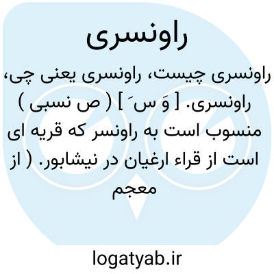 راونسری. [ وَ س َ ] ( ص نسبی ) منسوب است به راونسر که قریه ای است از قراء ارغیان در نیشابور. ( از معجم البلدان ).