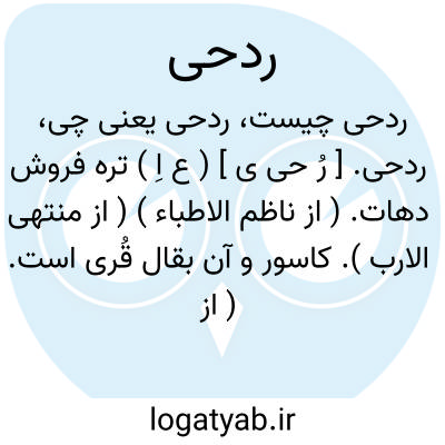 ردحی. [ رُ حی ی ] ( ع اِ ) تره فروش دهات. ( از ناظم الاطباء ) ( از منتهی الارب ). کاسور و آن بقال قُری است. ( از اقرب الموارد ).