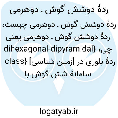 {dihexagonal-dipyramidal class} [زمین شناسی] ردۀ بلوری در سامانۀ شش گوش با تقارن 6/0m 2/0m 2/0m