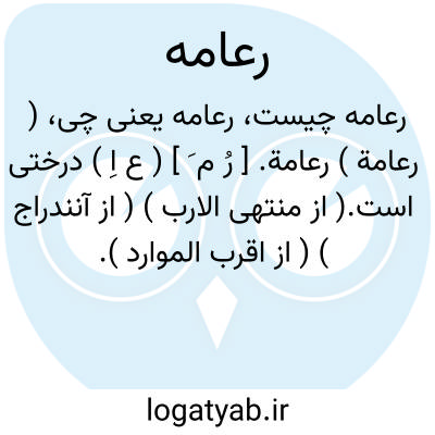 ( رعامة ) رعامة. [ رُ م َ ] ( ع اِ ) درختی است.( از منتهی الارب ) ( از آنندراج ) ( از اقرب الموارد ).