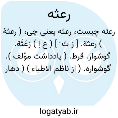 ( رعثة ) رعثة. [ رَ ث َ ] ( ع اِ ) رَعَثَة. گوشوار. قرط. ( یادداشت مؤلف ). گوشواره. ( از ناظم الاطباء ) ( دهار ). گوشواره. ج، رِعاث. ( منتهی الارب ) ( آنندراج ). زیر گوشی. ( مهذب الاسماء ). گوشواره، و در اصل هر چیزی که آویزان و جنبان باشداعم از گوشواره و گردن بند. ( از اقرب الموارد ). || غبغب خروس. ( ناظم الاطباء ). غبغب خروس و موهای زیر زنخ آن. ( منتهی الارب ) ( آنندراج ) ( از اقرب الموارد ). ریش خروس. ج ِ رَعَثات. رعاث. ( مهذب الاسماء ). || تاج خروس و موهای زیر زنخ آن. ج، رِعاث و رَعَثات و رُعُث و رُعَث. ( ناظم الاطباء ). تاج خروس. ( منتهی الارب ) ( آنندراج ). || آوندی که از غلاف طلع خشک سازند و بدان آب خورند. ( ناظم الاطباء )( از منتهی الارب ) ( از آنندراج ) ( از اقرب الموارد ).