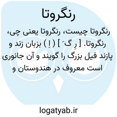 رنگروتا. [ رِ گ َ ] ( اِ ) بزبان زند و پازند فیل بزرگ را گویند و آن جانوری است معروف در هندوستان و به این معنی با زای نقطه دار هم بنظر آمده است. ( برهان قاطع ) ( از آنندراج ). رجوع به بان بربیتا شود.