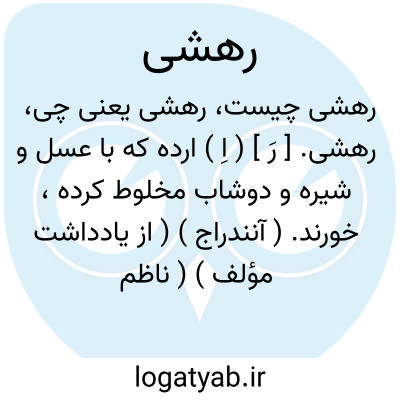 رهشی. [ رَ ] ( اِ ) ارده که با عسل و شیره و دوشاب مخلوط کرده، خورند. ( آنندراج ) ( از یادداشت مؤلف ) ( ناظم الاطباء ). به فارسی ارده نامند وآن کنجد بوداده مقشر است که از ساییدن بسیار مایع گردد و روغن از آن جدا نکنند. مصلحش عسل و سرکه است.( از تحفه حکیم مؤمن ). رجوع به رهشه و رهشی شود.