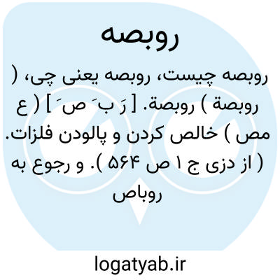 ( روبصة ) روبصة. [ رَ ب َ ص َ ] ( ع مص ) خالص کردن و پالودن فلزات. ( از دزی ج 1 ص 564 ). و رجوع به روباص شود.