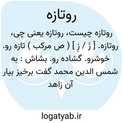 بیار آن زاهد روتازه را تیز.نظامی.و رجوع به تازه رو شود. || مرحوم وحید دستگردی روتازه را در بیت ذیل از نظامی، تازه سکه معنی کرده است: