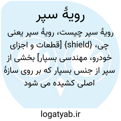 {shield} [قطعات و اجزای خودرو، مهندسی بسپار] بخشی از سپر از جنس بسپار که بر روی سازۀ اصلی کشیده می شود و کاربرد آن زیبایی و کاهش اثرات ضربه به عابر پیاده است