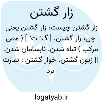زار گشتن. [ گ َ ت َ ] ( مص مرکب ) تباه شدن. نابسامان شدن. || زبون گشتن. خوار گشتن: