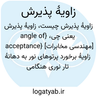 {angle of acceptance} [مهندسی مخابرات] زاویۀ برخورد پرتوهای نور به دهانۀ تار نوری هنگامی که نور به درون تار نوری هدایت شود