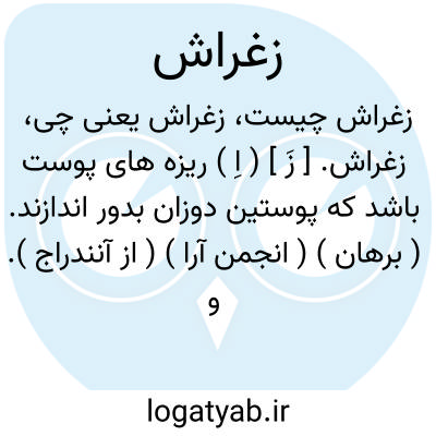 زغراش. [ زَ ] ( اِ ) ریزه های پوست باشد که پوستین دوزان بدور اندازند. ( برهان ) ( انجمن آرا ) ( از آنندراج ). و آن را زغریماش نیز نوشته اند. ( انجمن آرا ) ( آنندراج ). خرده ریزهای پوست که پوستین دوزان بدور اندازند. ( فرهنگ فارسی معین ) ( از ناظم الاطباء ). || تسمه های بریده شده از پوست. ( ناظم الاطباء ). رجوع به زغریماش شود.