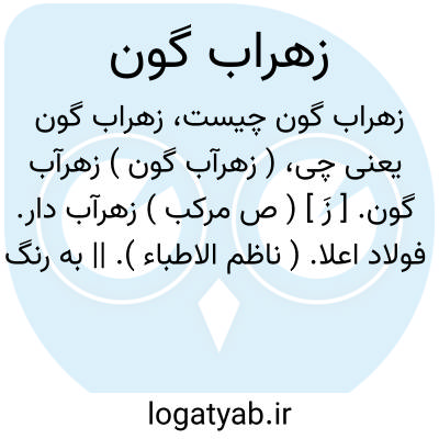 ( زهرآب گون ) زهرآب گون. [ زَ ] ( ص مرکب ) زهرآب دار. فولاد اعلا. ( ناظم الاطباء ). || به رنگ زهرآب. ( از فهرست ولف ). || همچنان زهرآب کاری و کشنده: